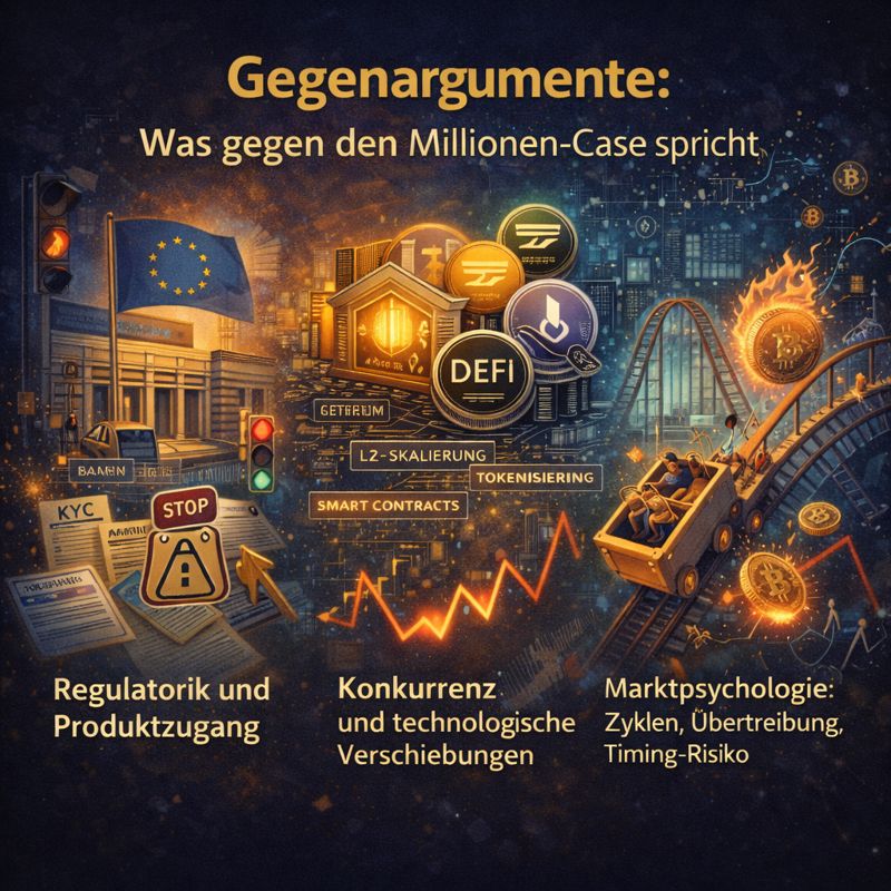 Bitcoin ist nicht das einzige Krypto-Narrativ. Smart-Contract-Plattformen, L2-Lösungen, Tokenisierung und neue Zahlungsrails können Aufmerksamkeit und Kapital umverteilen. Das muss Bitcoin nicht „schaden“, verändert aber die These, welche Rolle Bitcoin im Ökosystem übernimmt.